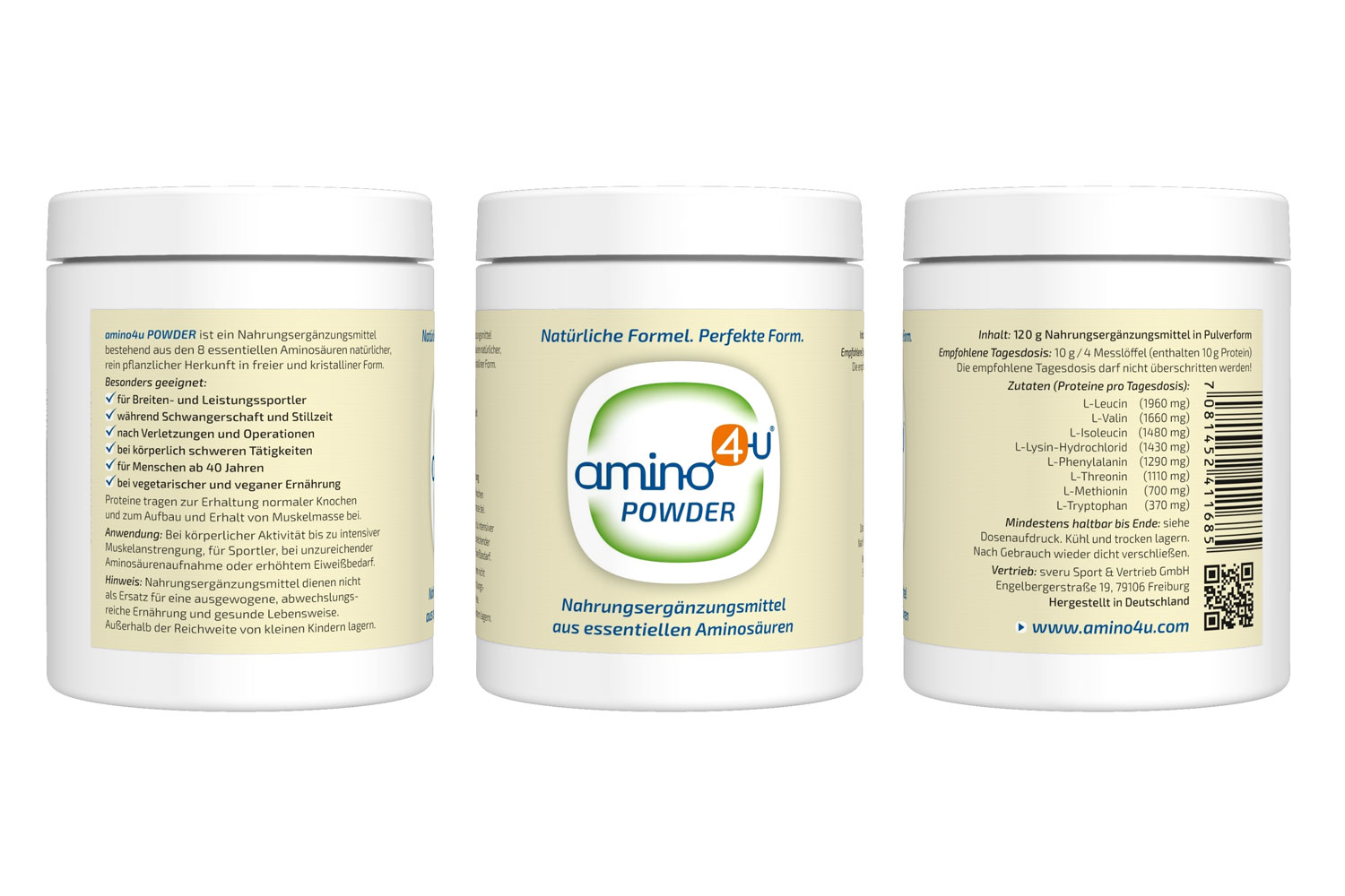 amino4u ist ein Nahrungsergänzungsmittel bestehend aus den acht essentiellen Aminosäuren natürlicher Herkunft in reinster, freier und kristalliner Form.
